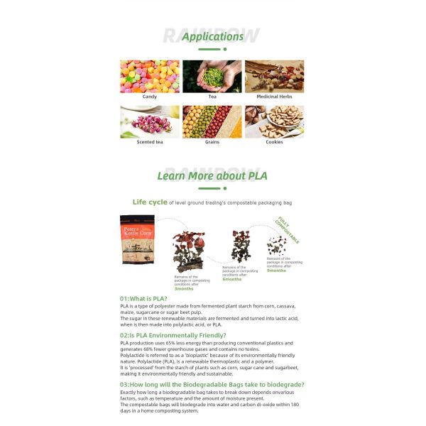 Custom Biodegradable PLA Kraft Paper Zipper Pouch Stand Up Tea Food Packaging Images |